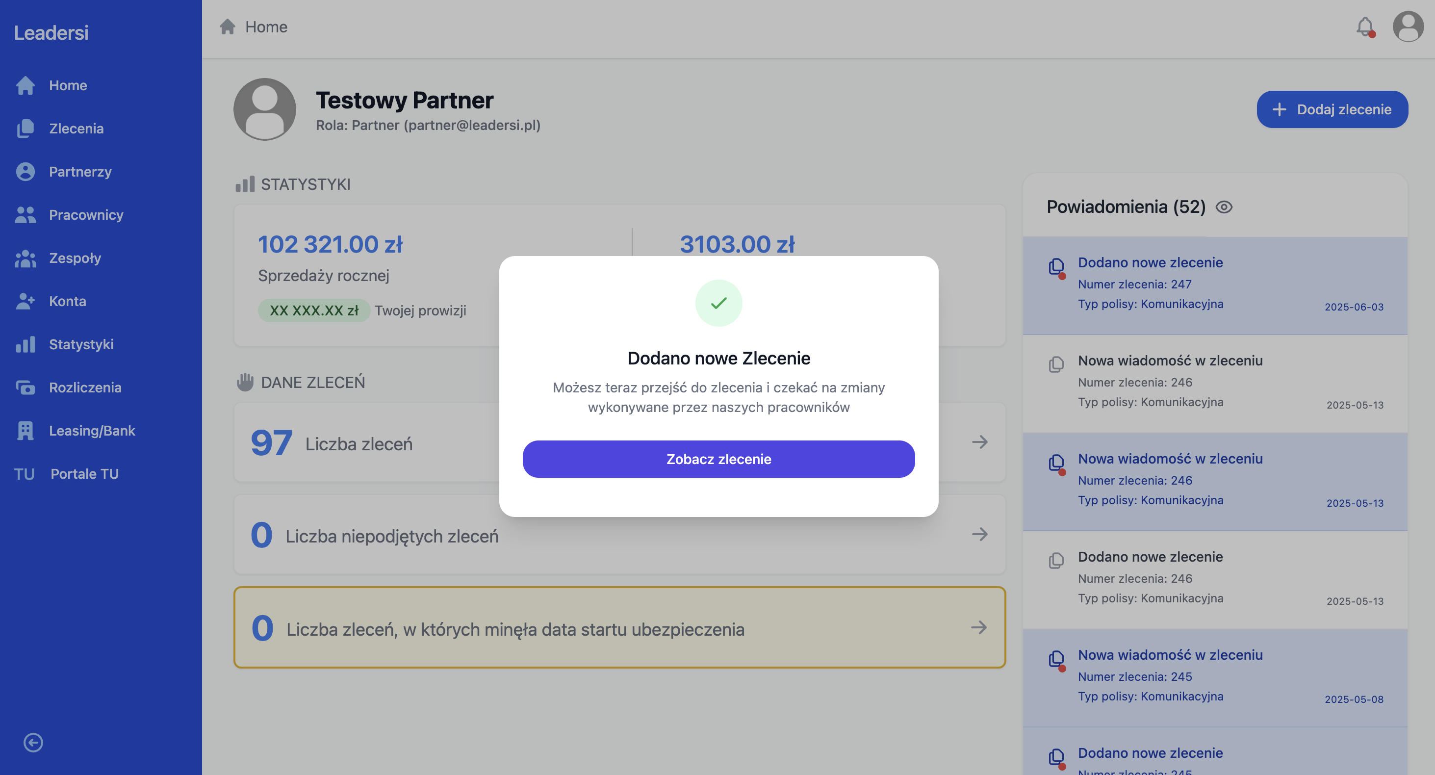 po dodaniu zlecenia
